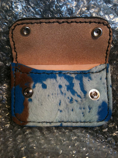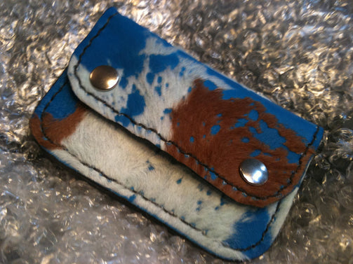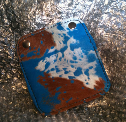 Everything on his little guy is hand cut, punched and stitched. Made from a vibrant turquoise blue acid washed cow hide and vegetable tanned leather.