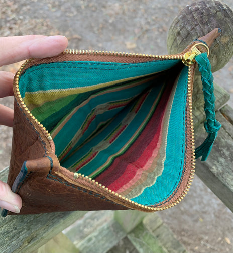 All made with Caramel oil tanned exterior and southwest fabric interior.
