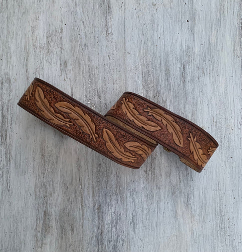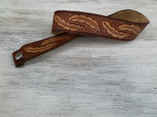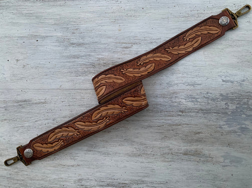 Hand Tooled Leather Feather Bag Strap, Western Tooled Strap, Tooled Feathers, Western Fashion Bag Strap, Wide Tooled Leather Purse strap